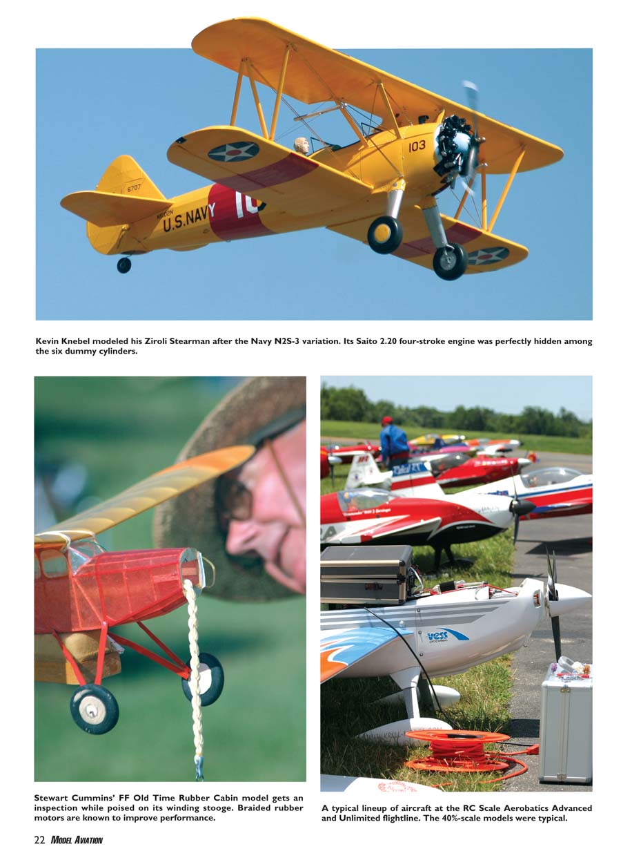 Kevin Knebel modeled his Ziroli Stearman after the Navy N2S-3 variation. Its Saito 2.20 four-stroke engine was perfectly hidden among