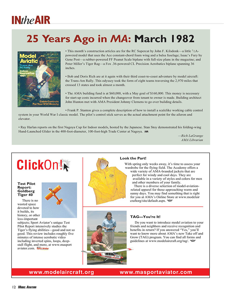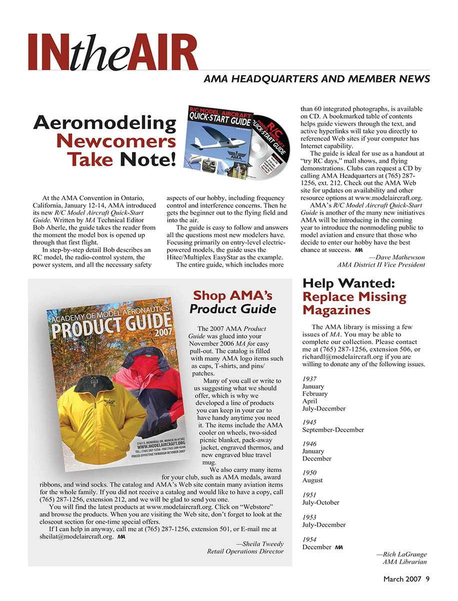 ribbons, and wind socks. The catalog and AMA’s Web site contain many aviation items
