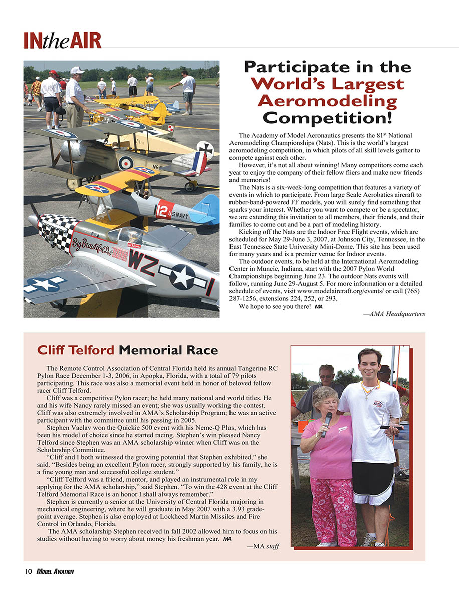 schedule of events, visit www.modelaircraft.org/events/ or call (765)