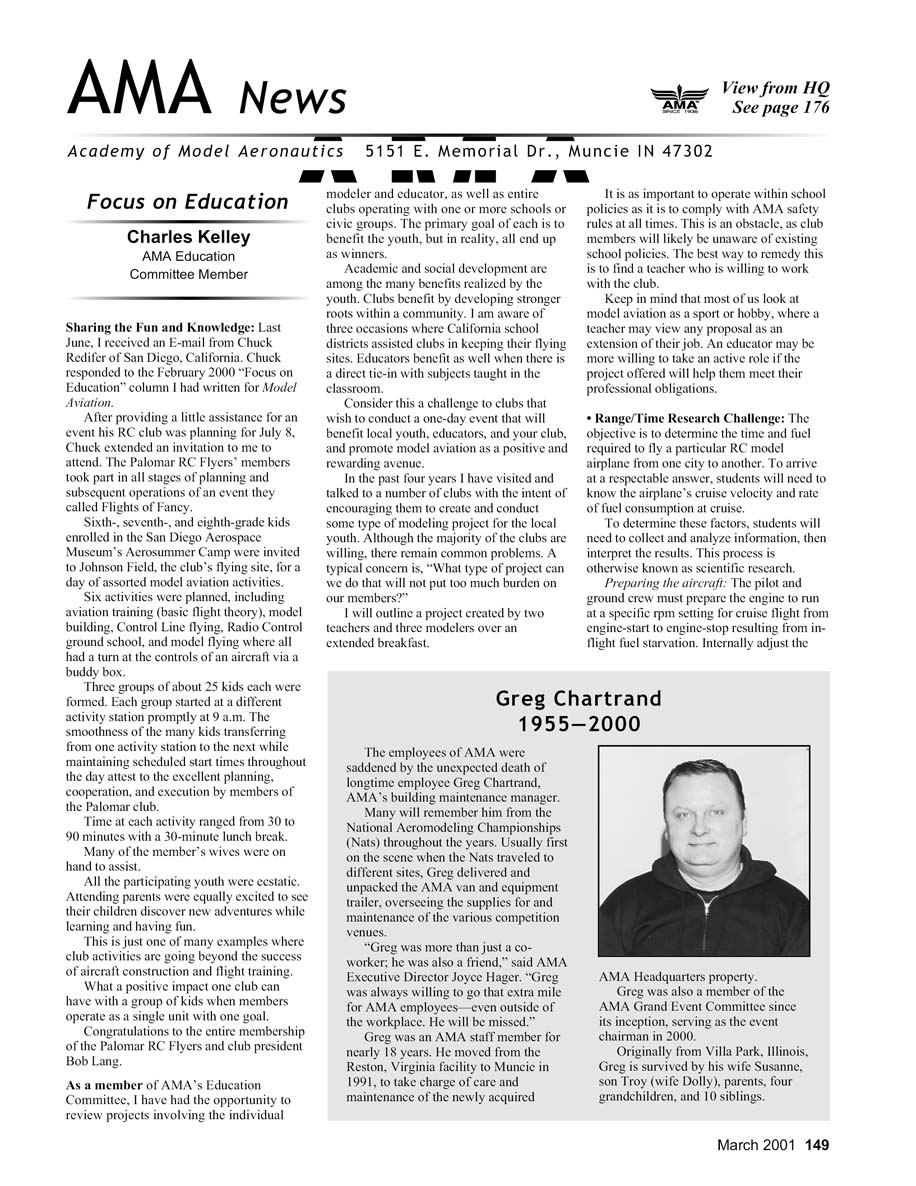 Sharing the Fun and Knowledge: Last June I received an e-mail from Chuck Redifer of San Diego, California. Chuck had responded to the February 2000 "Focus on Education" column I wrote for Model Aviation. After providing a little assistance for an event his RC club was planning for July 8, Chuck extended an invitation to me to attend.