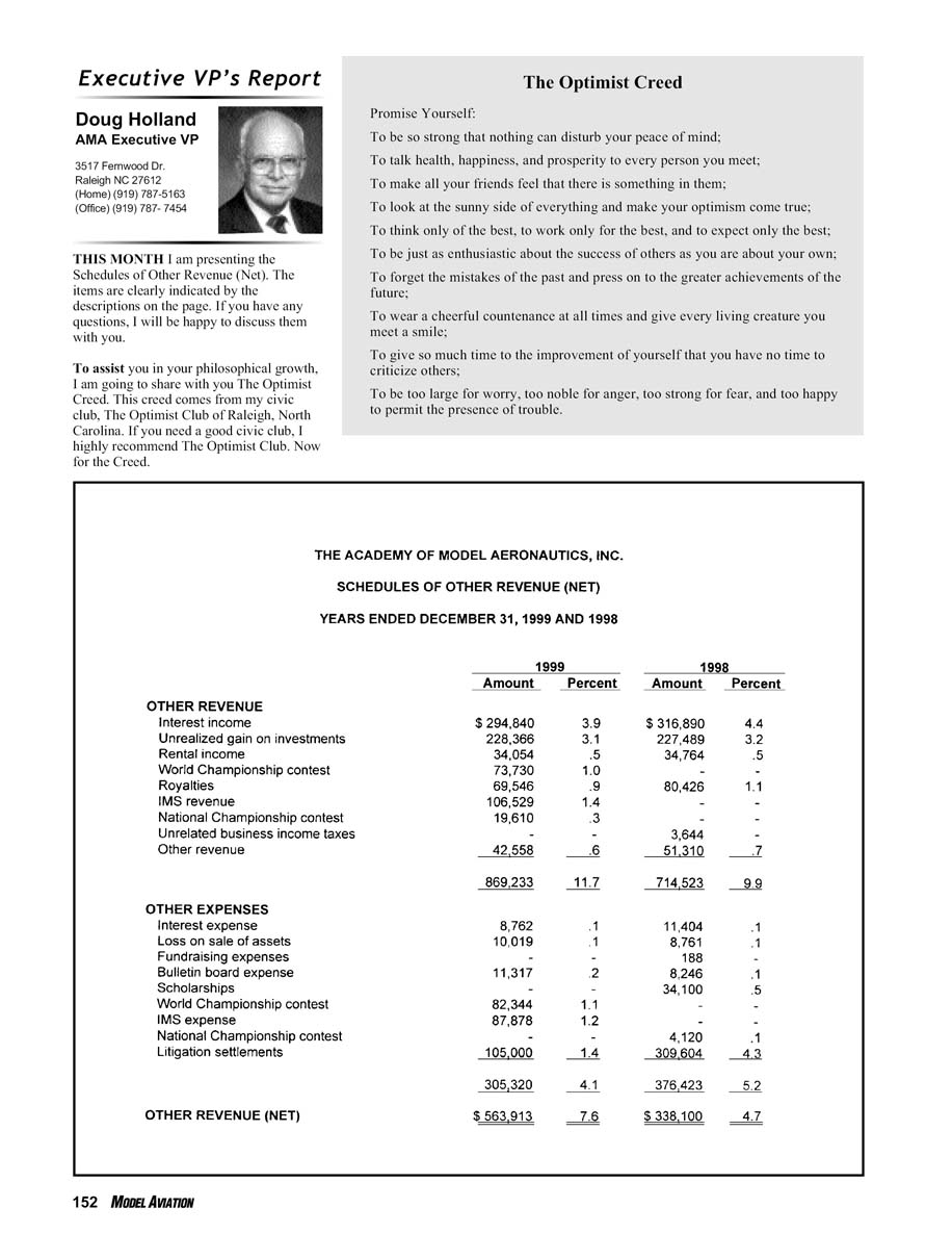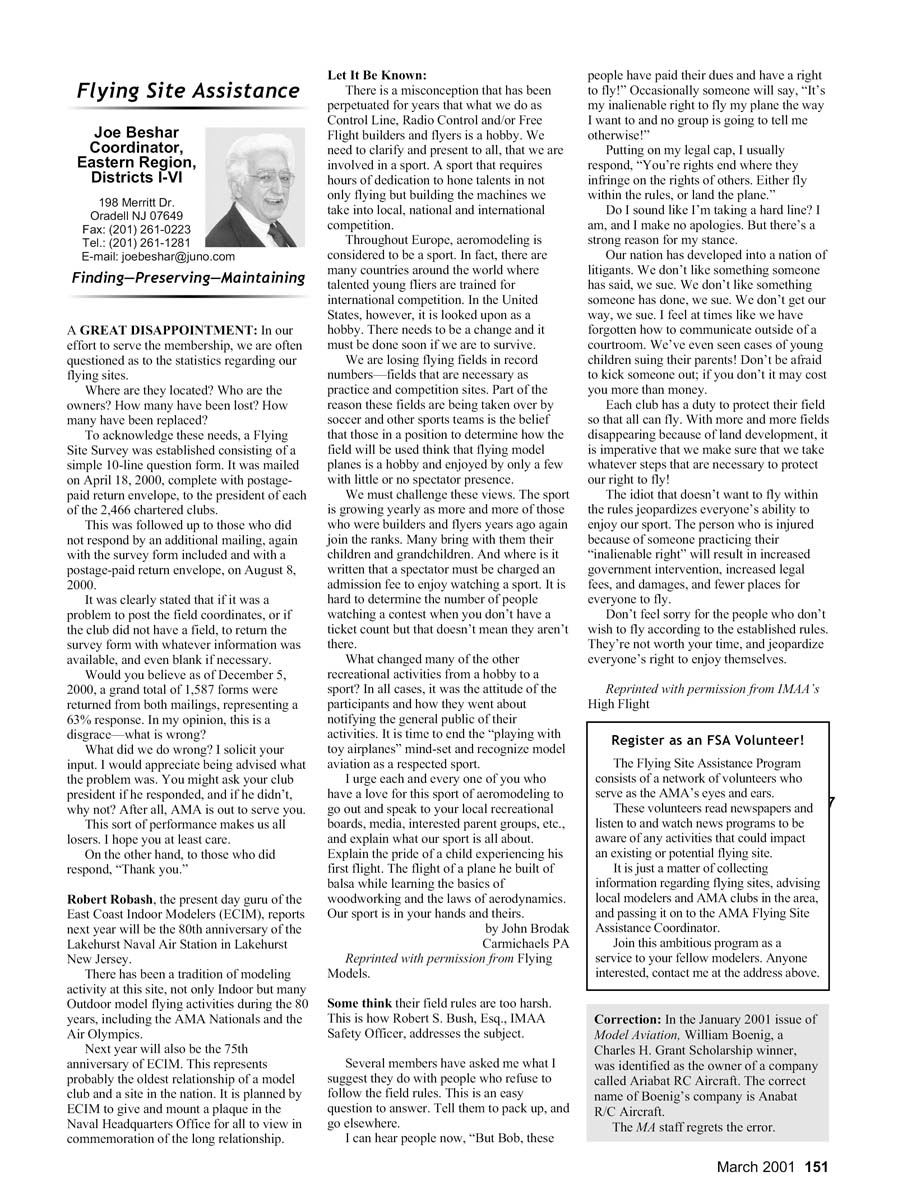 Well, another season is almost upon us. I consider the Toledo Expo the start of the season for me. This year's dates are April 6–8, 2001. Before those first flights, do a good pre-flight check on batteries and control surfaces. A great flight depends on it.