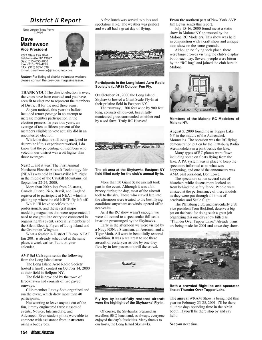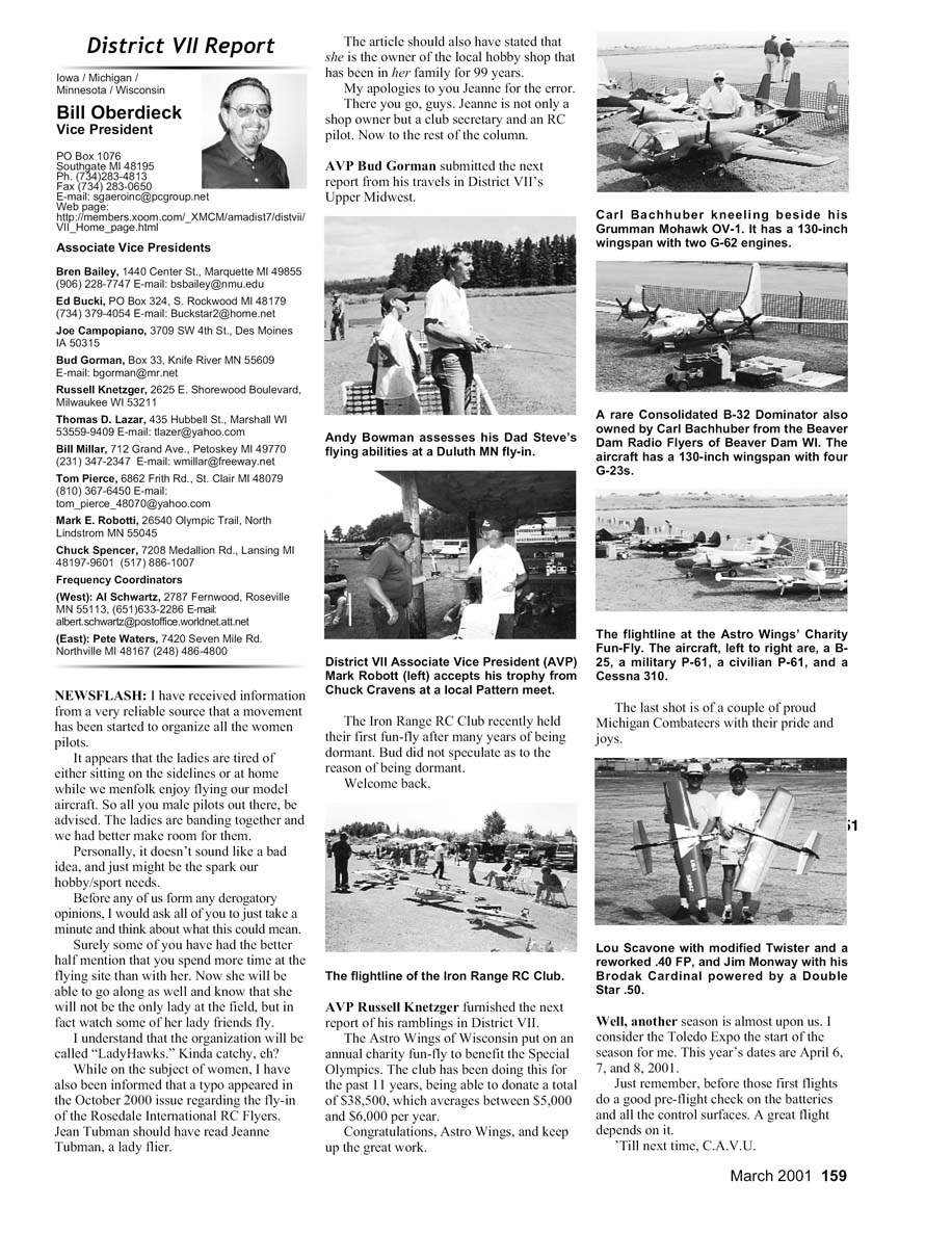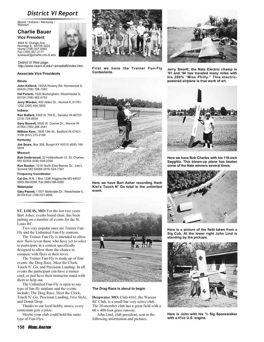 AVP Bud Gorman reported on the Iron Range RC Club's recent fun-fly after many years of dormancy—welcome back. AVP Russell Knetzger reported the Astro Wings of Wisconsin's annual charity fun-fly benefiting the Special Olympics; over 11 years the club donated $38,500. Congratulations.