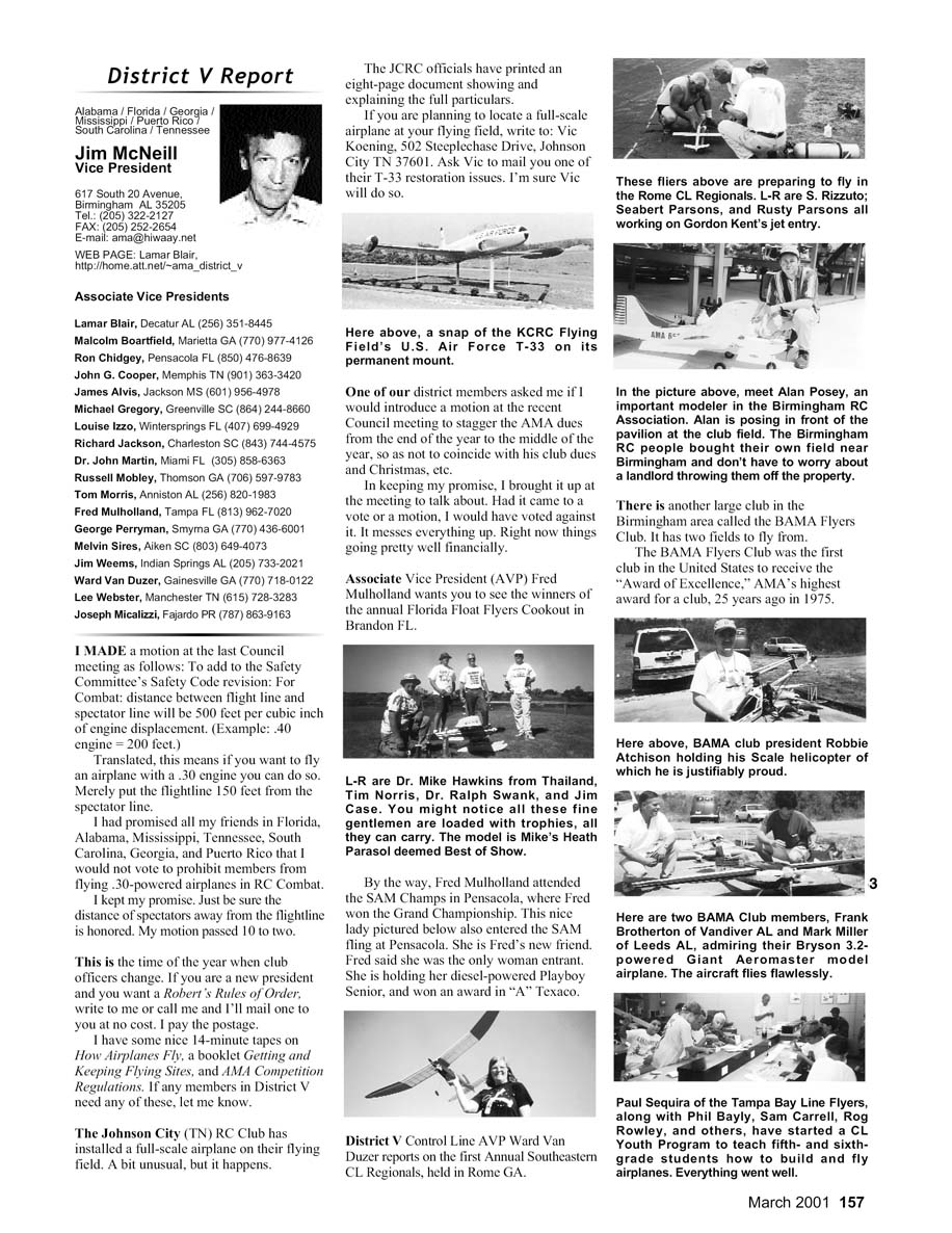 The first selected members include Jim Brady, Eric Urr, and Gene Davis of Alamogordo, NM. Certificates and logo caps will be provided. Nomination criteria and procedures will be available on the District VIII Web site (http://www.AMA-Dist-8.org/) or from Committee Chairman Wayne Beauchamp, 410 E. 53rd, Suite 1722, Odessa, TX 79762 | e-mail: crash1@netwest.com.