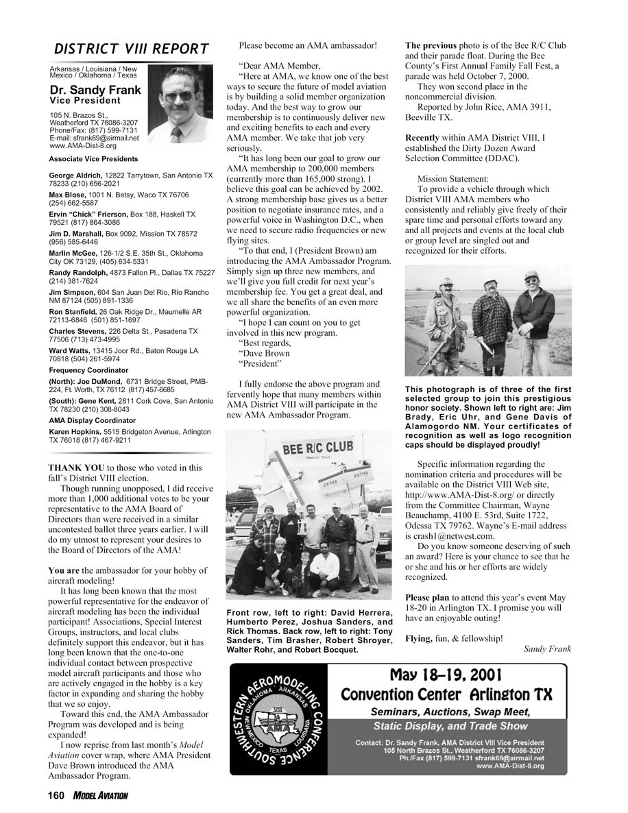 Toward this end, the AMA Ambassador Program was developed and is being expanded. AMA President Dave Brown introduced the program: sign up three new members and you'll receive full credit for next year's membership fee. I fully endorse the program and hope many in District VIII participate.