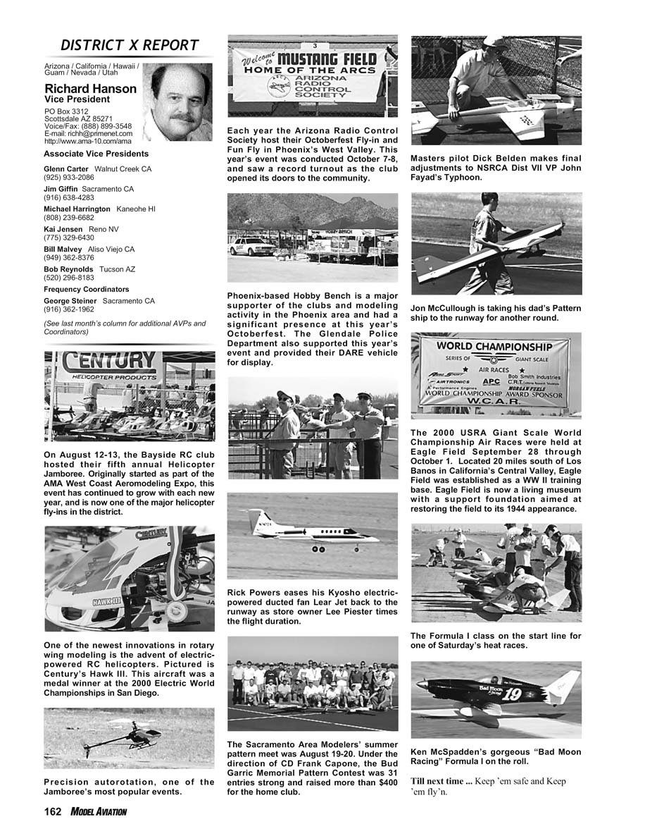 The 2000 USRA Giant Scale World Championship Air Races were held at Eagle Field (near Los Banos, CA) September 28–October 1. Eagle Field, a WWII training base, is now a living museum.