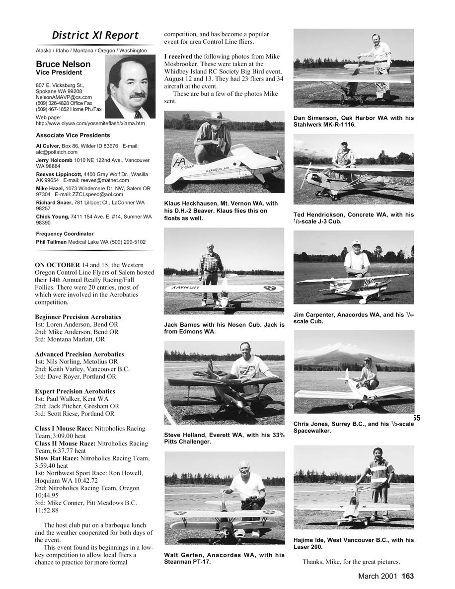 On October 14–15, the Western Oregon Control Line Flyers of Salem hosted their 14th Annual Really Racing/Fall Follies with 20 entries. Events included Aerobatics and multiple racing classes.