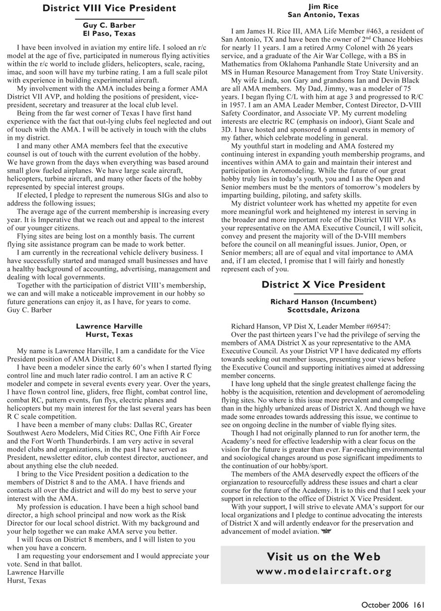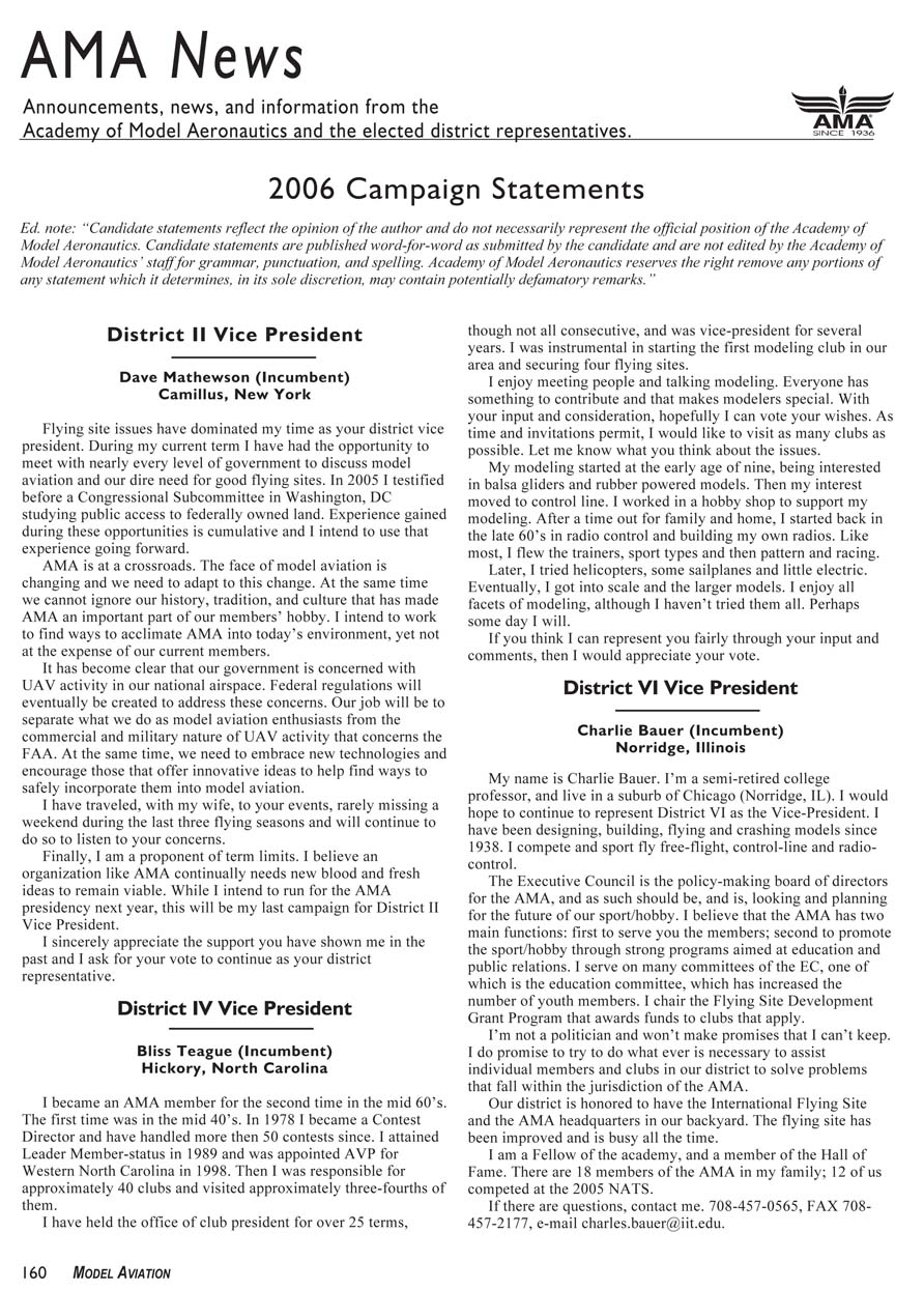 Model Aeronautics. Candidate statements are published word-for-word as submitted by the candidate and are not edited by the Academy of