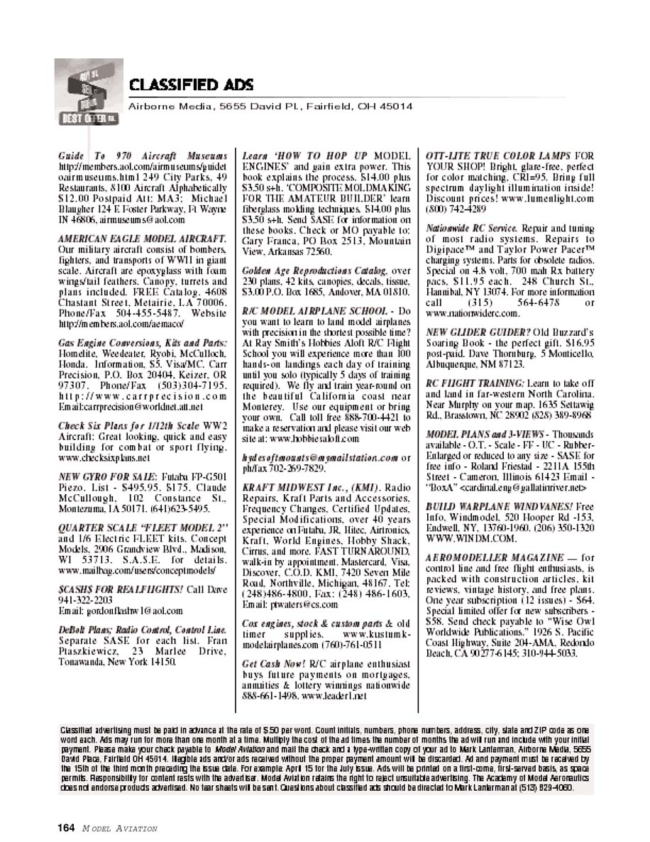 - Please make your check payable to Model Aviation and mail the check and copy to: Mark Lanterman, Airborne Media, 5655 David Place, Fairfield, OH 45014. Eligible ads and/or ads received without the proper payment amount will be discarded.