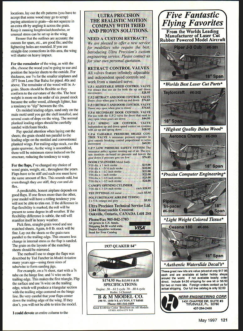 For the flaps, I've changed my choice of wood, grain, weight, etc., throughout the years. Flaps have to be stiff and each one must have the same amount of flex. This sounds odd, but even though they are stiff, they can and do flex.