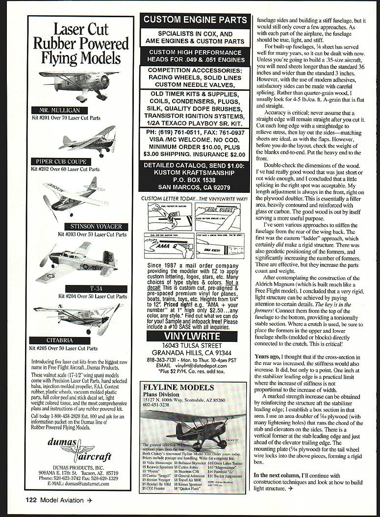 I could devote an entire column to the fuselage sides and building a stiff fuselage, but it would still only cover a few approaches. As with each part of the airplane, the fuselage should be true, light, and stiff.
