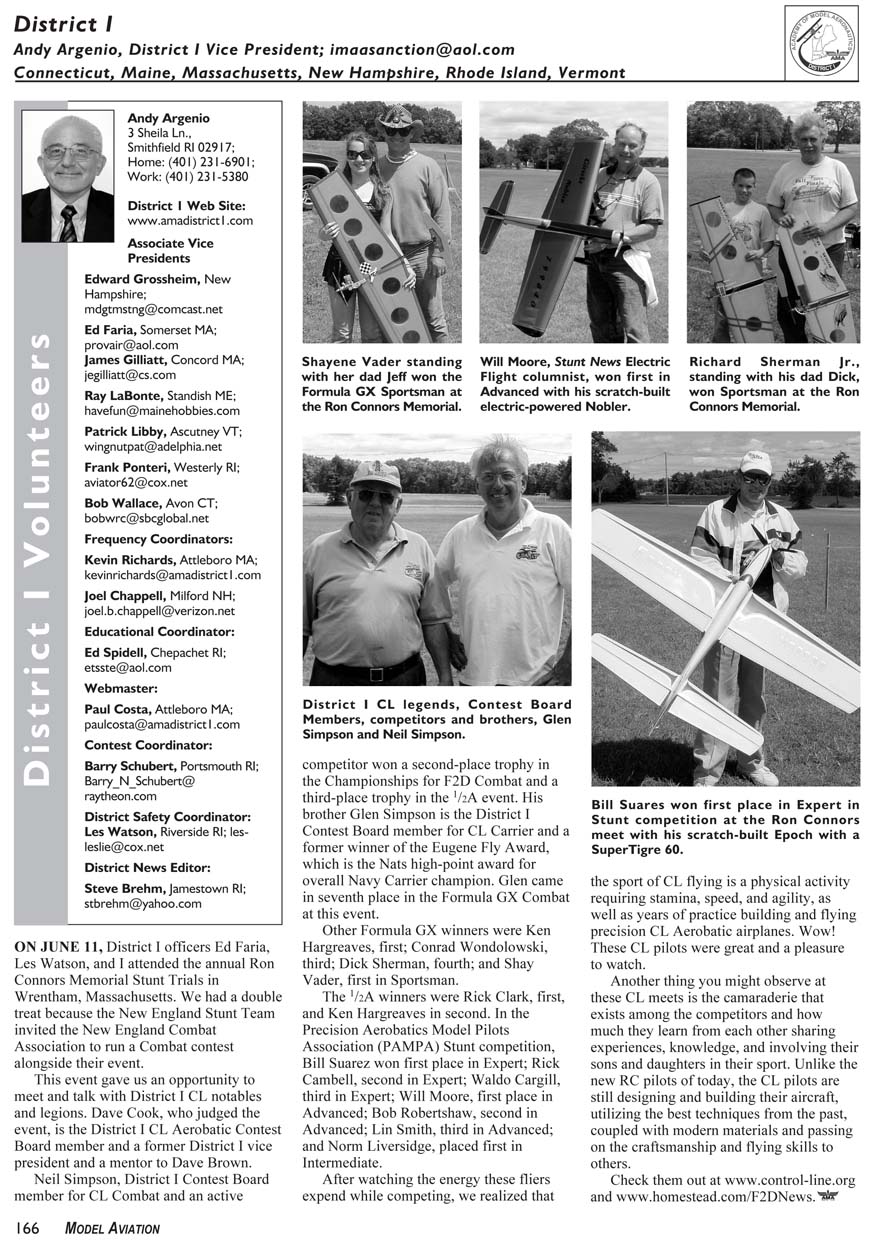 Andy Argenio, District I Vice President; imaasanction@aol.com