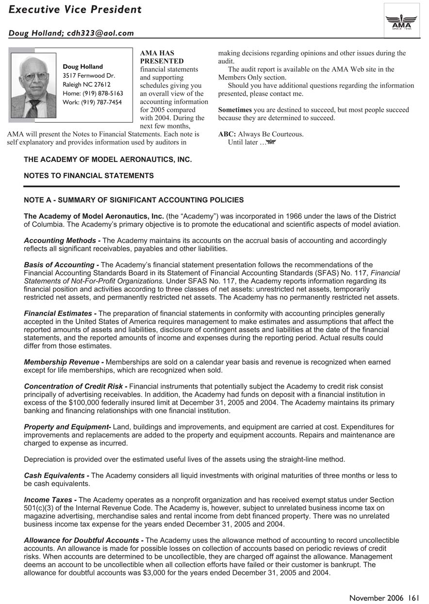 AMA will present the Notes to Financial Statements. Each note is