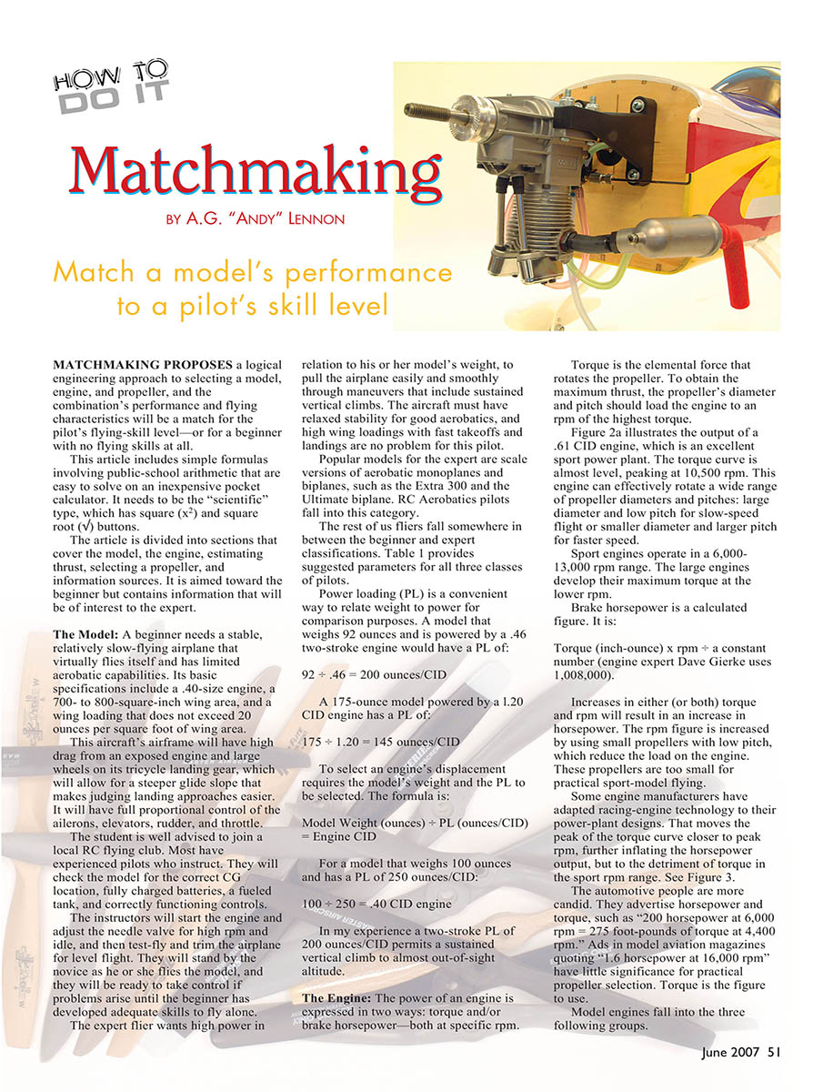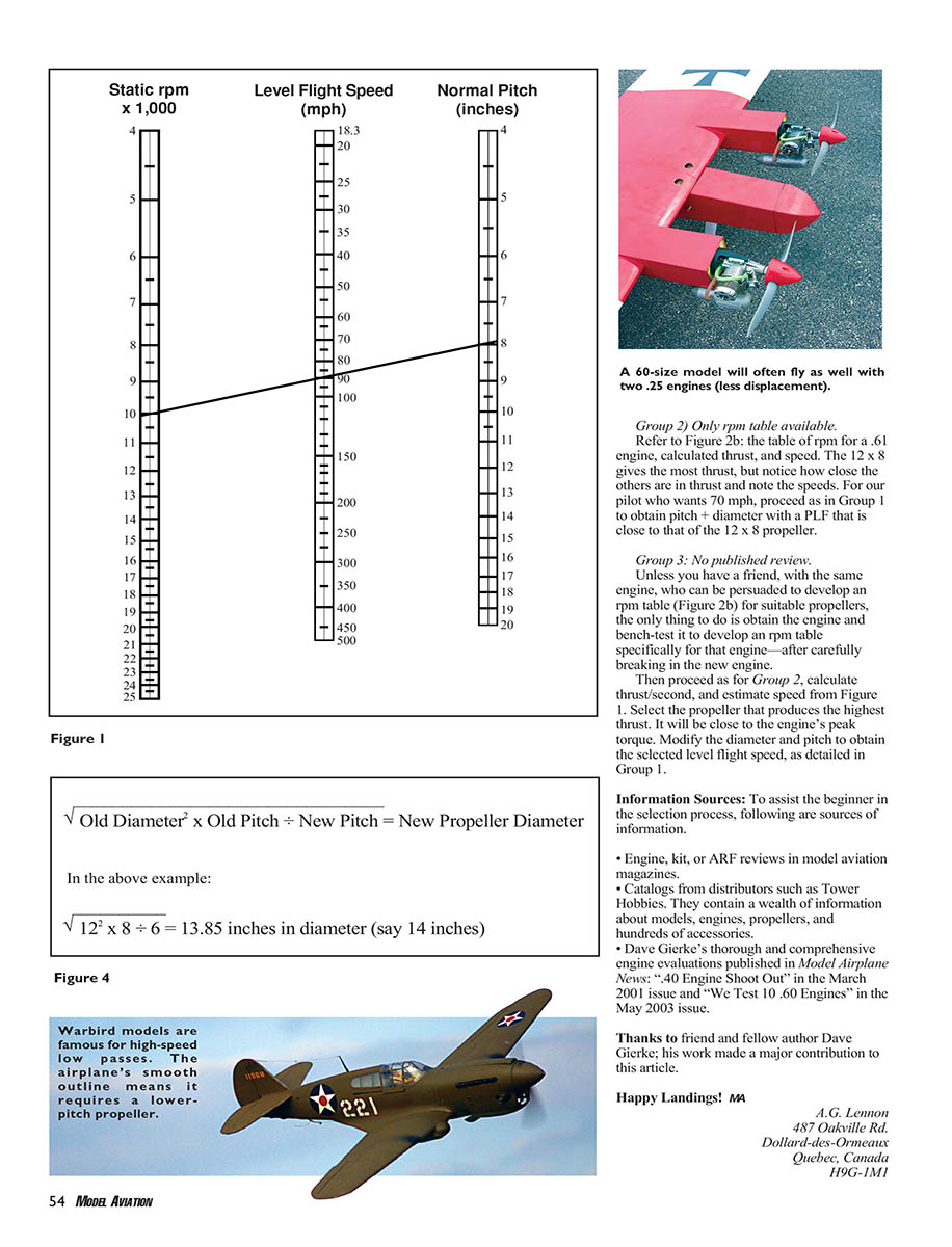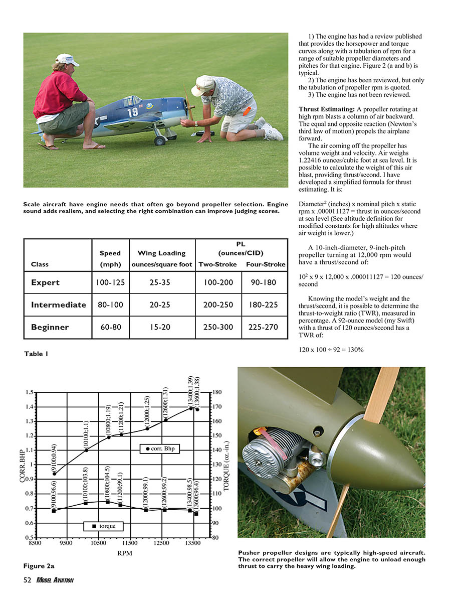 A two-stroke .46 engine can use any of more than a dozen 9- to 11-inch-diameter
