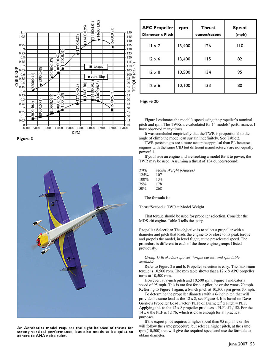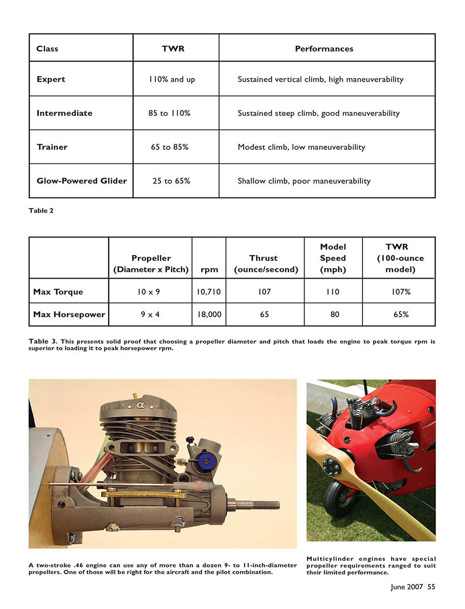 Table 3. This presents solid proof that choosing a propeller diameter and pitch that loads the engine to peak torque rpm is