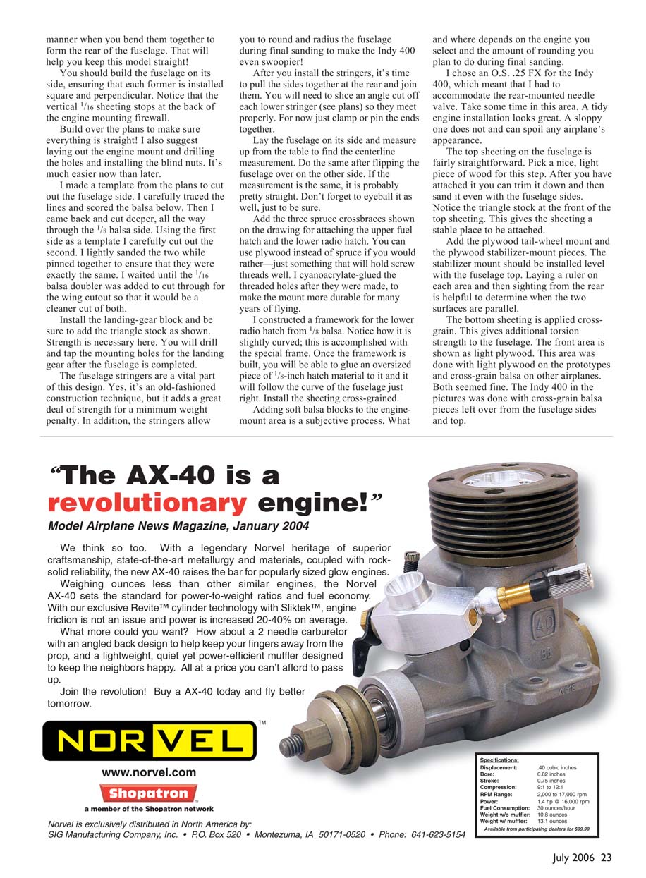power and reliability. On this model I chose a new O.S. .25 FX. I