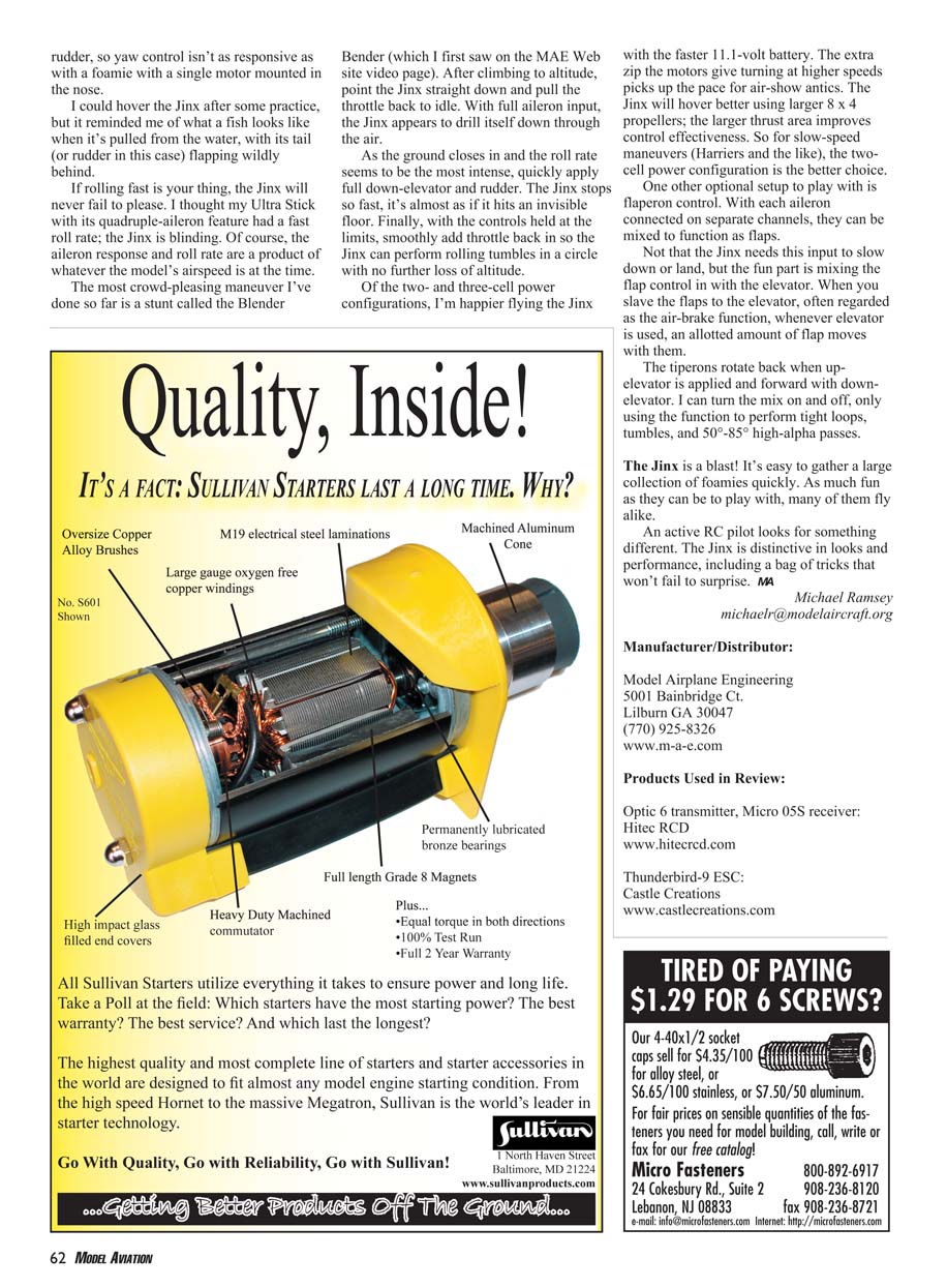 fit into the precut servo openings. The Jinx is available as a stand-alone kit or as a complete package from MAE.