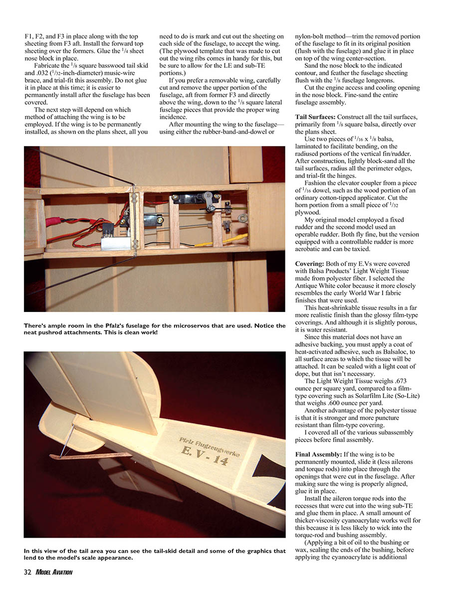 I didn't choose the Pfalz E.V as a modeling subject only because it was a bit different and a little-known design. I also picked it because it was powered by an in-line engine that resulted in a fuselage with a longer nose–moment arm that I hoped would produce a better-flying model. Another appealing factor was a fuselage that was essentially rectangular in shape, making it easier to fabricate.