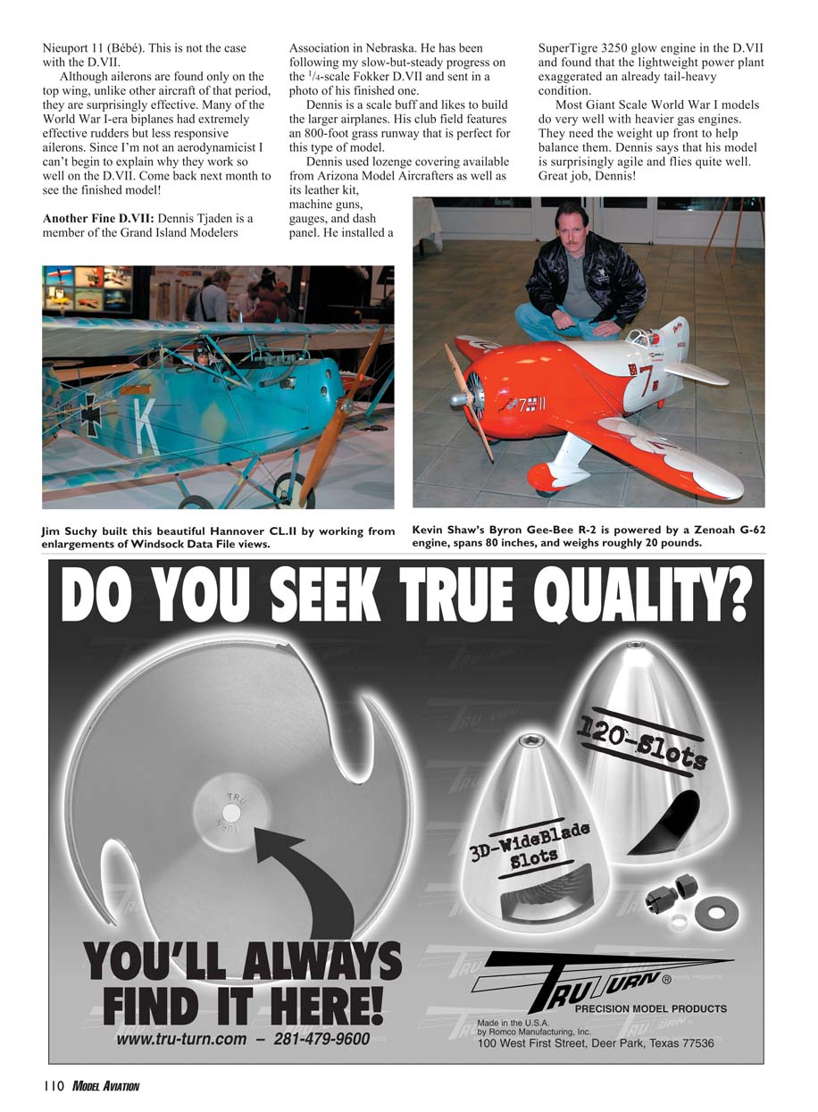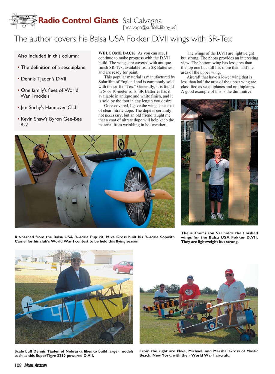 Kit-bashed from the Balsa USA 1/4-scale Pup kit, Mike Gross built his 1/4-scale Sopwith