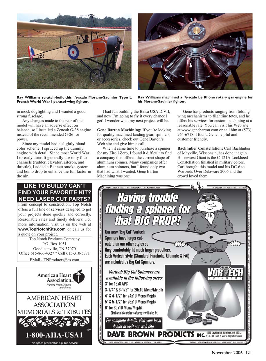 11sig4.QXD 9/26/06 9:06 AM Page 120Ray Williams scratch-built this 1/3-scale Morane-Saulnier Type L