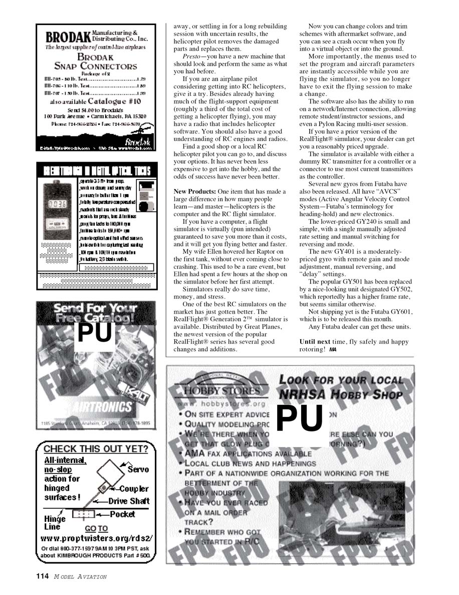 It's another great month to enjoy the hobby of RC (Radio Control) helicopters! I want to thank all the helicopter pilots—and prospective pilots—who have written me about this column. Your input is appreciated. This column would be even more enjoyable if you would send me photographs of your helicopter projects!