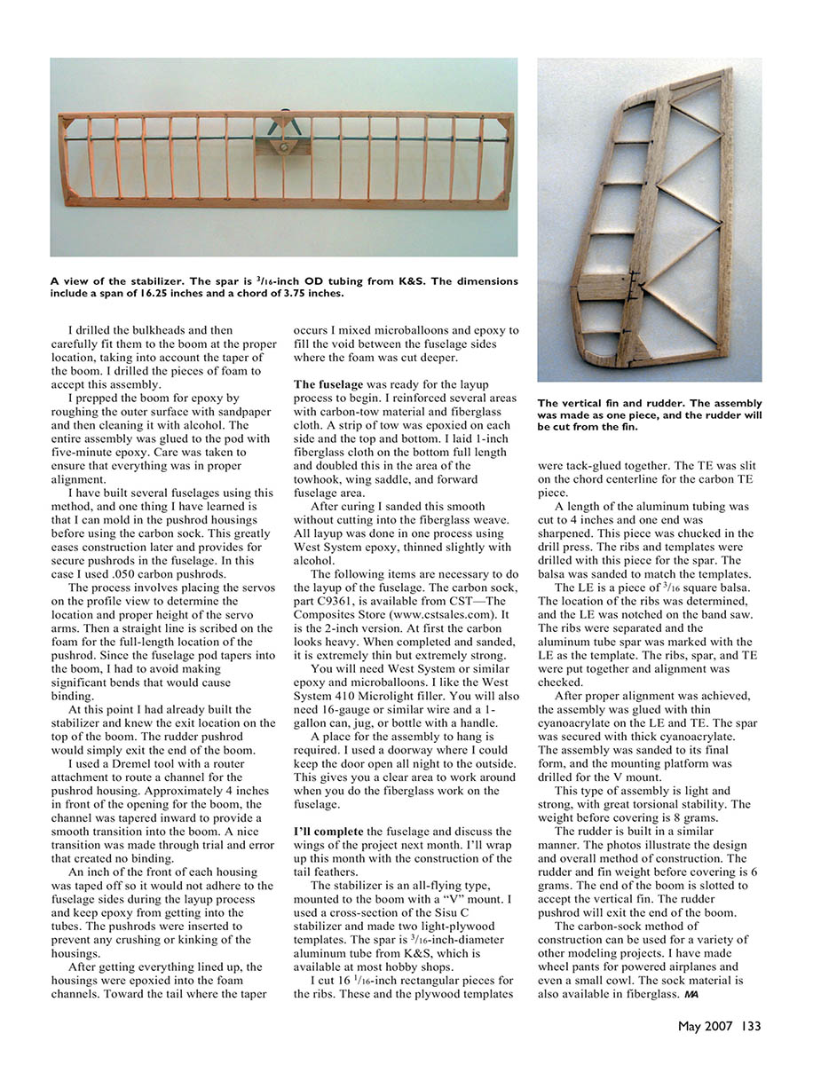 A view of the stabilizer. The spar is 3/16-inch OD tubing from K&S. The dimensions