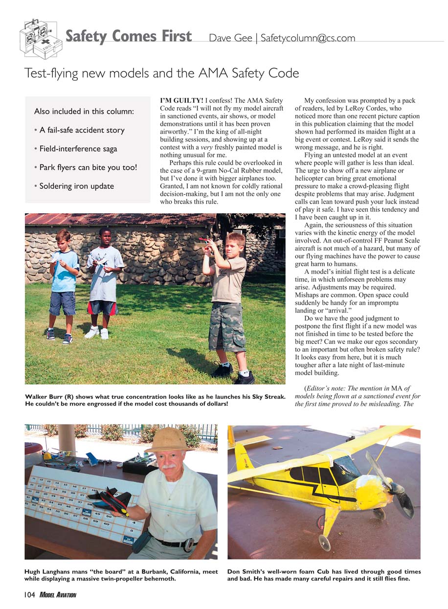 Safety Comes First Dave Gee | Safetycolumn@cs.com