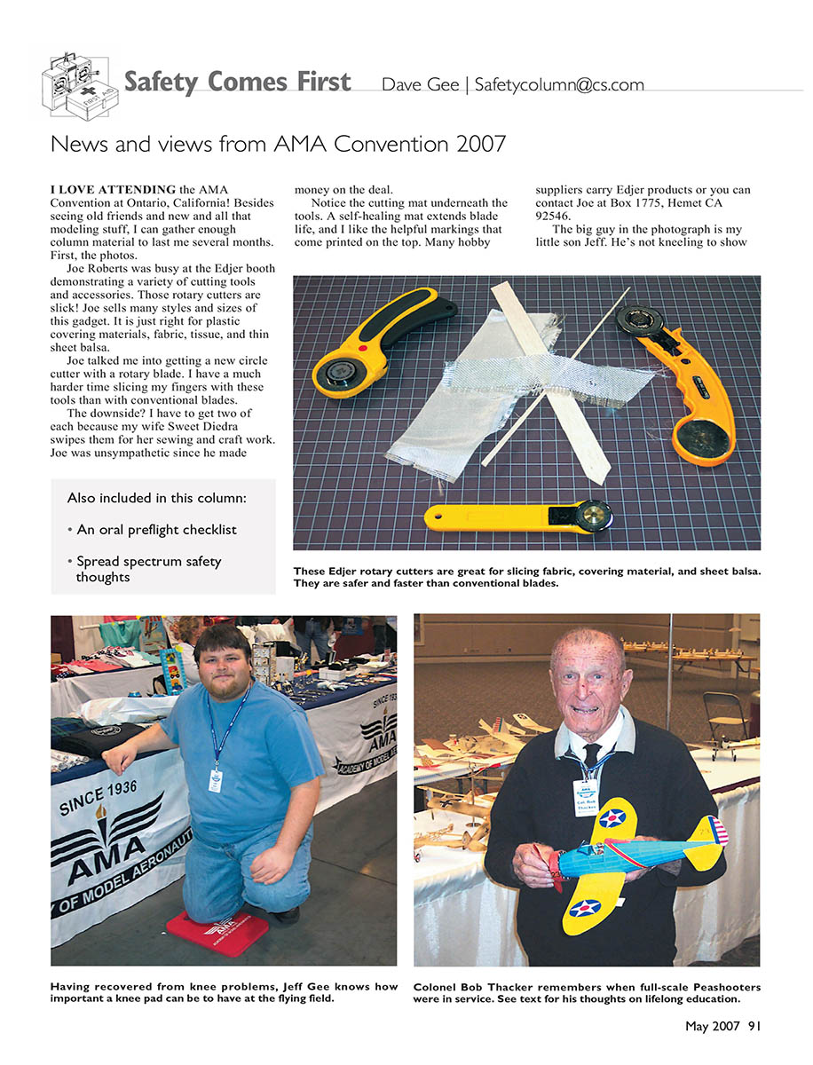 Safety Comes First Dave Gee | Safetycolumn@cs.com