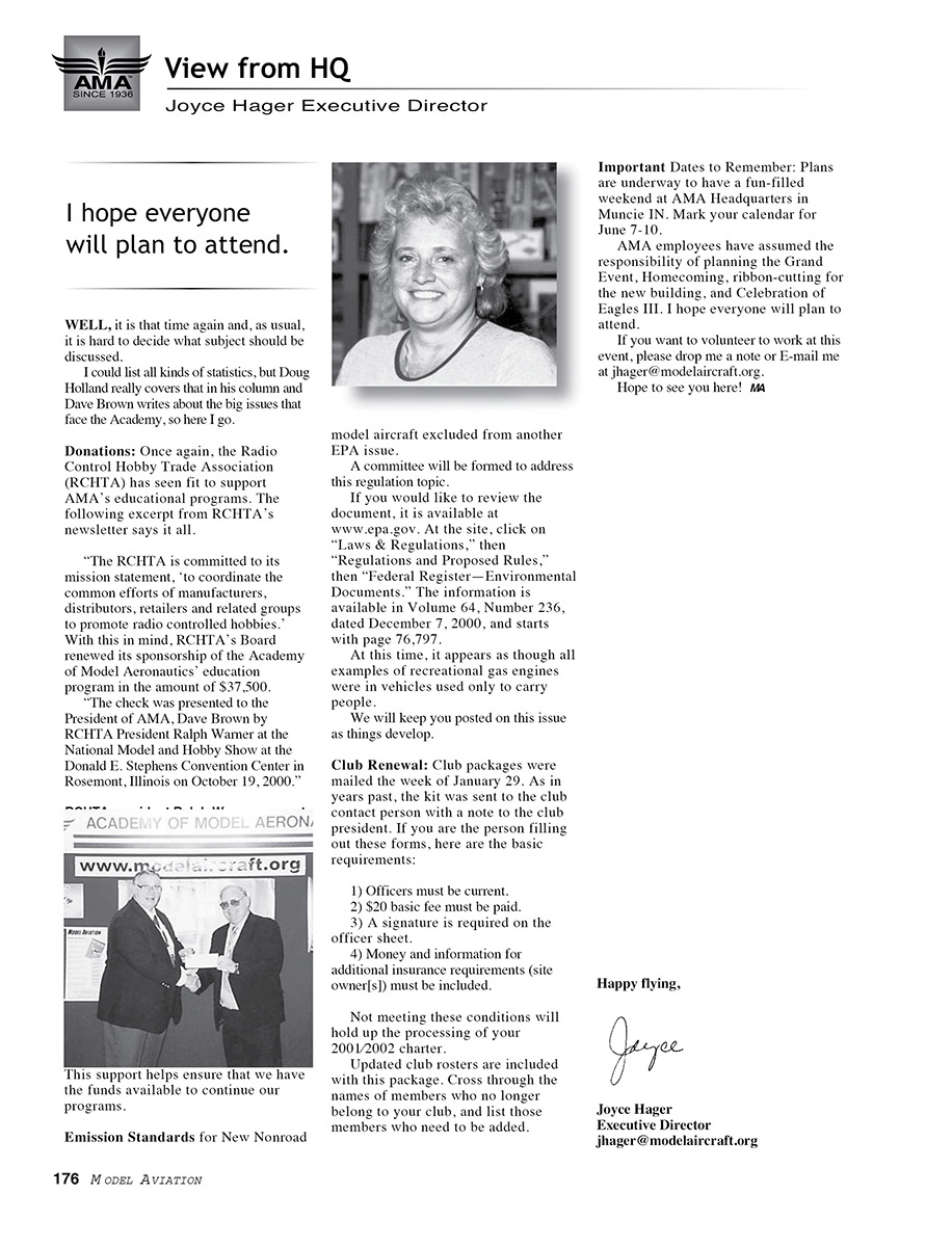 Joyce Hager Executive Director jhager@modelaircraft.org
